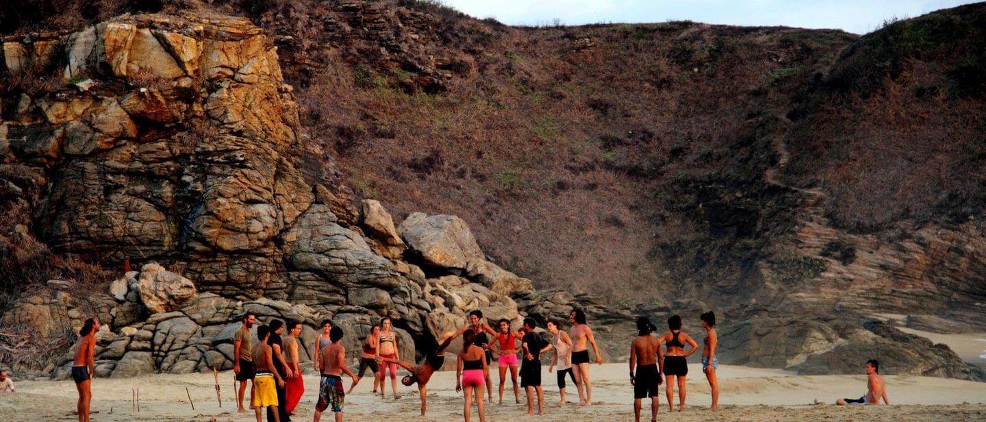 Workshops are usually 5 days long, each day centered on one of the themes and composed of a specific warm-up, training on related skills and a time for research, both personal and collective, based on the studied principles.