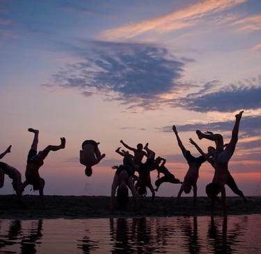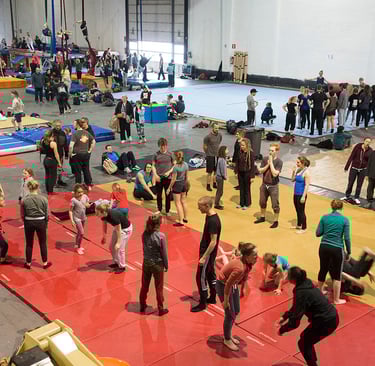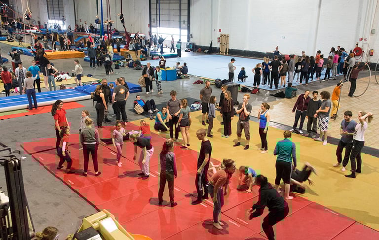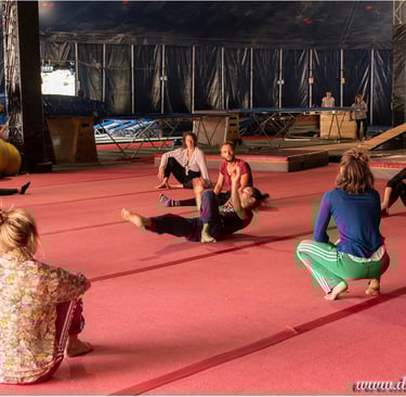 Falling as a rock, or softly like water... this class will investigate various ways to «enter the floor», combining dance technics, slapstick and different falling principles to more traditionnal gymnastics and circus skills.