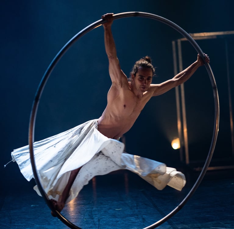 Raphael trained in Geneva's circus school « Théâtre-Cirqule » before joining the national circus school of Rosny (France), where he specialized in floor acrobatics, trampoline and single wheel.