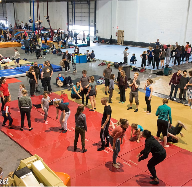 Falling as a rock, or softly like water... this class will investigate various ways to «enter the floor», combining dance technics, slapstick and different falling principles to more traditionnal gymnastics and circus skills.